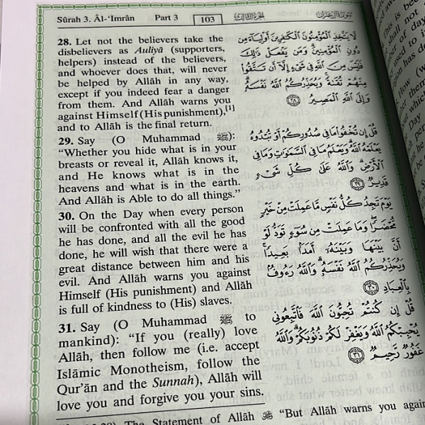 The Noble Quran Interpretation Large 24x17cm Green Paper Darussalam
