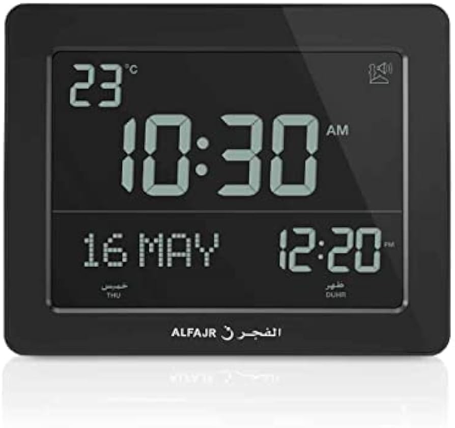 Deze Alfajr adhan clock combineert functionaliteit met een elegant design en is een betrouwbare hulpmiddel voor het dagelijks gebedsritme.