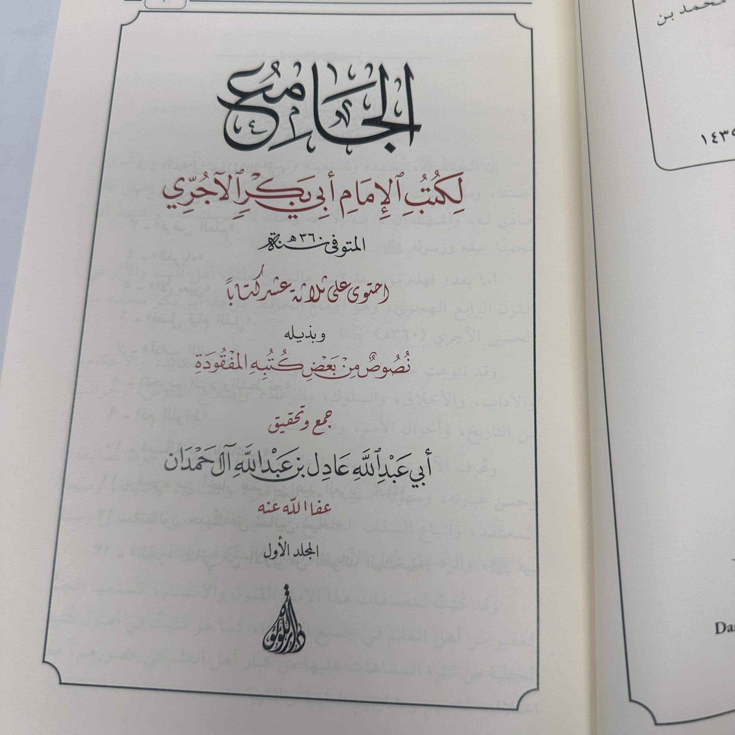 AL-JAME’ LIKUTUB AL-IMAM ABI BAKR AL-AJURYY – الجامع لكتب الإمام أبي بكر الآجري