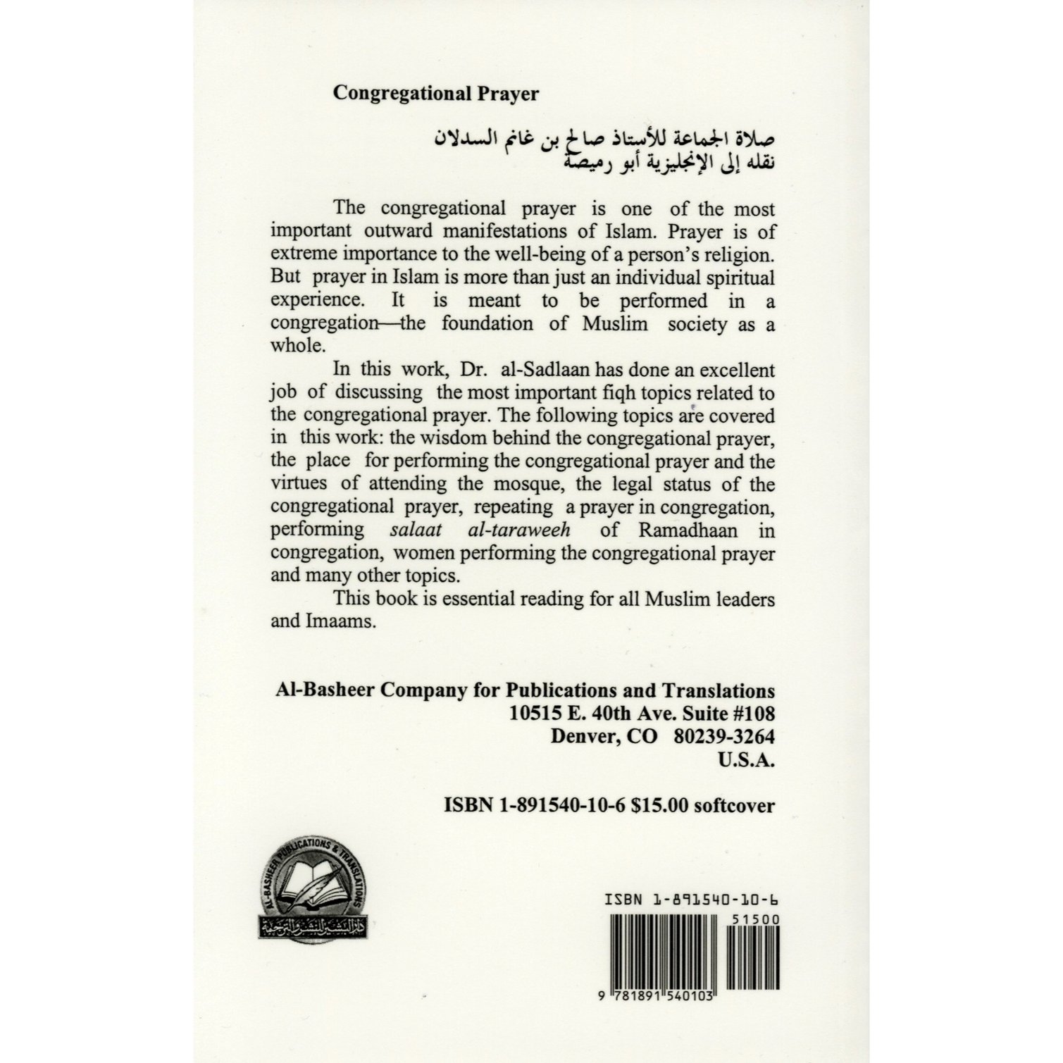 The Congregational Prayer is one of the most important outward manifestations of Islam. Prayer is of extreme importance to the well-being of a person’s religion. But prayer in Islam is more than just an individual spiritual experience. It is mean to be performed in a congregation – the foundation of a Muslim society as a whole. In this work, Dr al-Sadlaan has done an excellent job of discussing the most important fiqh topics related to the Congregational Prayer. The following topics are covered in this work, the wisdom behind Congregational Prayer, the place for performing Congregational Prayer and the virtues of attending the mosque, the legal status of the Congregational Prayer, repeating a prayer in congregation, performing sallat al-taraweeh of Ramadhan in congregation, women performing Congregational Prayer and many other topics. This book is essential reading for all Muslim leaders and Imams.