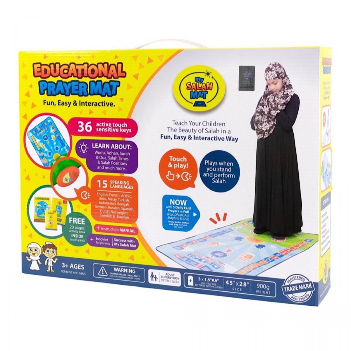 Touch and Play 36 Touch Sensitive Keys. Push to reveal sound.• NEW* Prays all 5 Daily prayers (Fajr, Dhuhr, Asr, Maghrib, Isha)