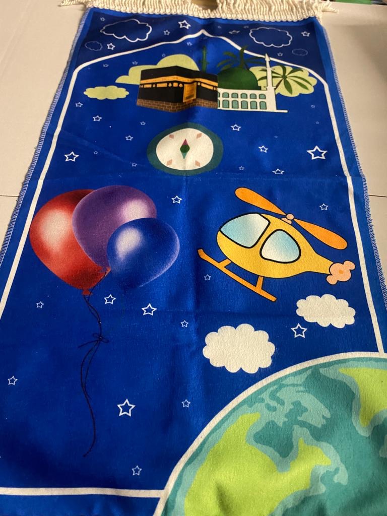 Kleur volle Gebeds kleedje voor de kleine moslim. Ze kunnen spelenderwijs het gebed mee bidden.