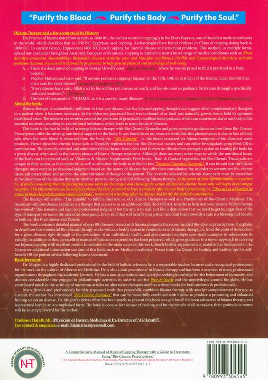 This book is the first in its kind to merge Hijama therapy with Bio-Chemic Remedies and gives complete guidance on how these Bio-Chemic Prescriptions offer the missing nutritional support to the body.