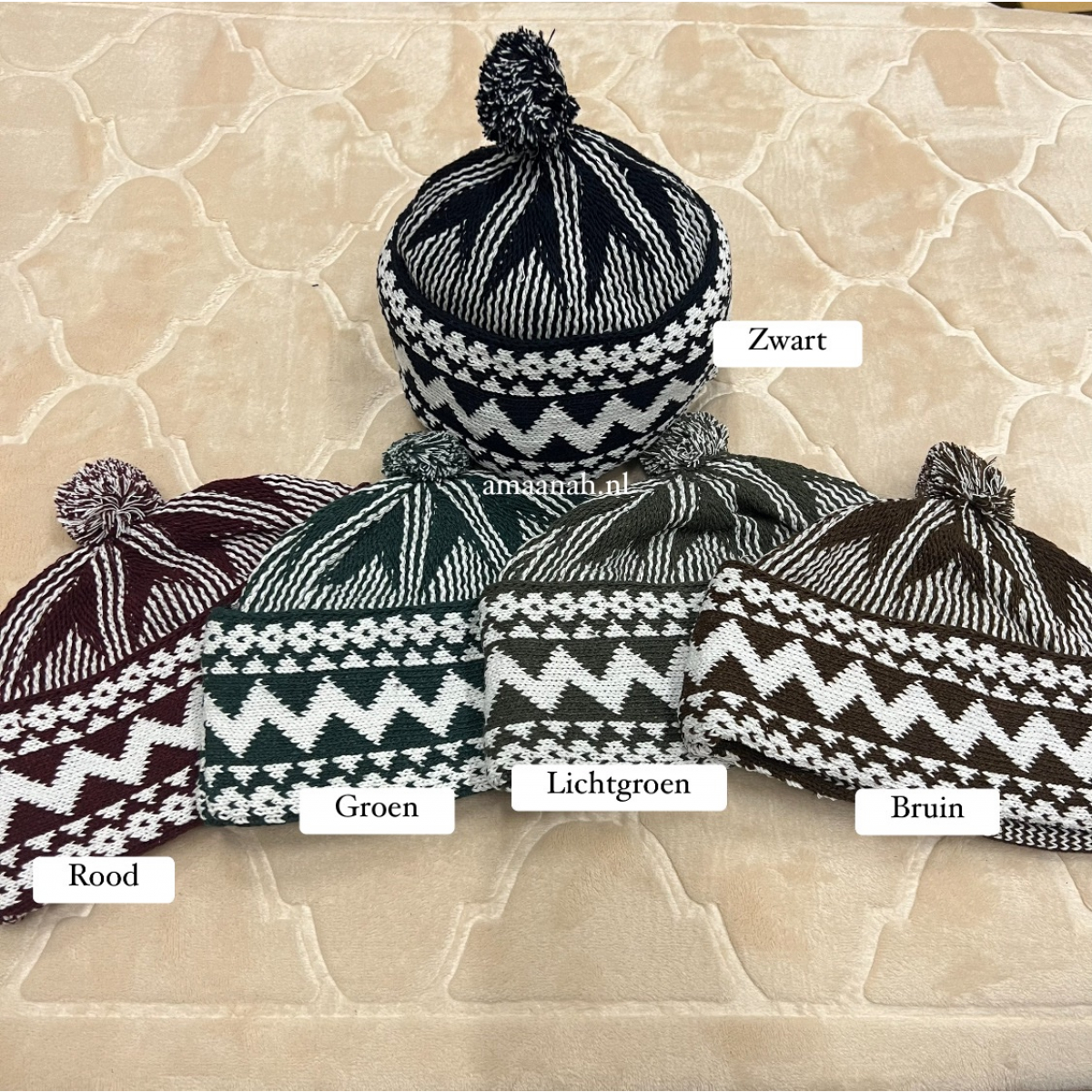 Islamitische muts kufi voor in de winter. Beschikbaar in de kleuren zwart, rood, groen, lichtgroen en bruin