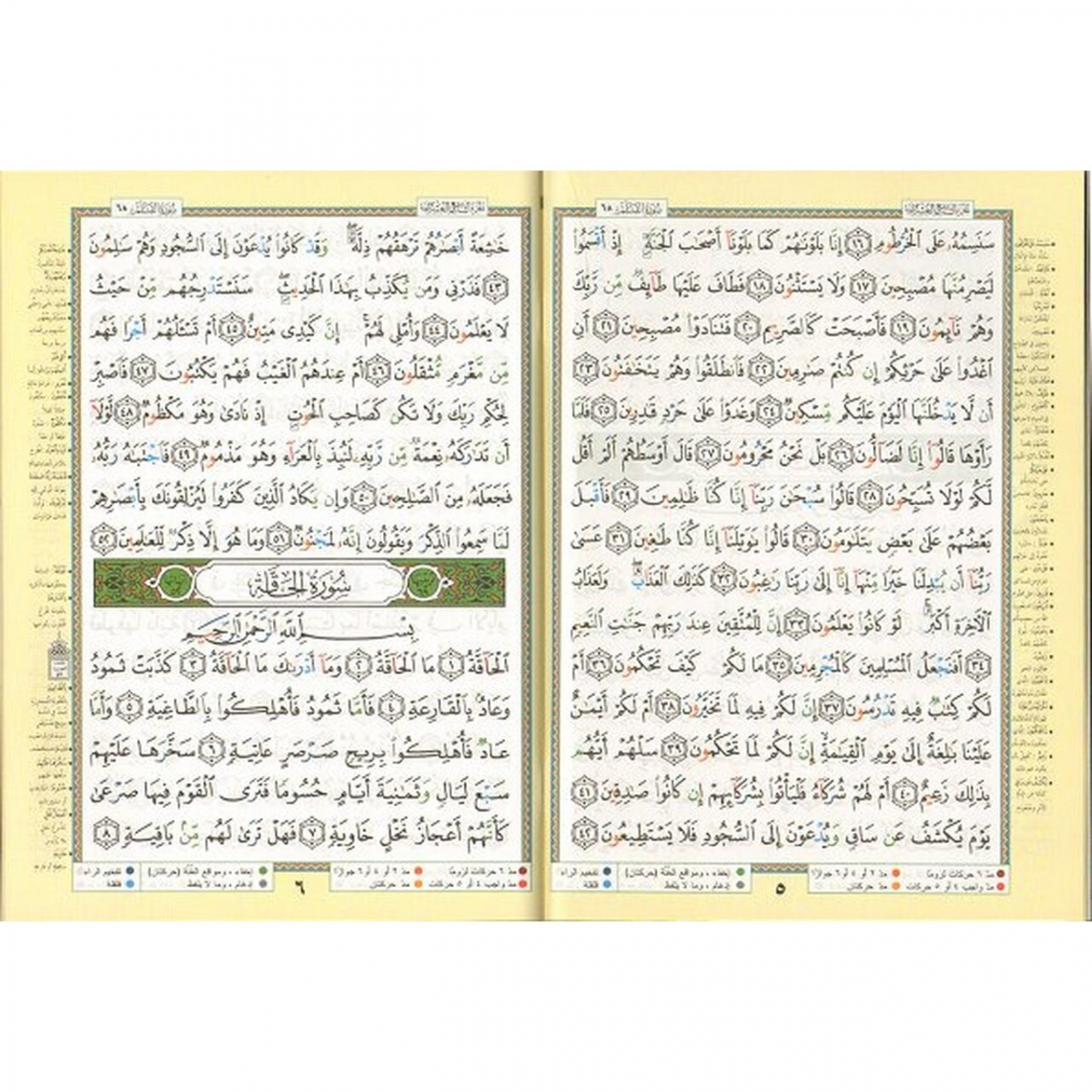 The reader will get used to reciting the Quran by using colors very easily. By engaging the eye, the reader will find him/herself applying 24 rules of Tajweed with ease and precision while his/her mind is left un-enganged to comprehend and understand the meaning of the holy Quran.