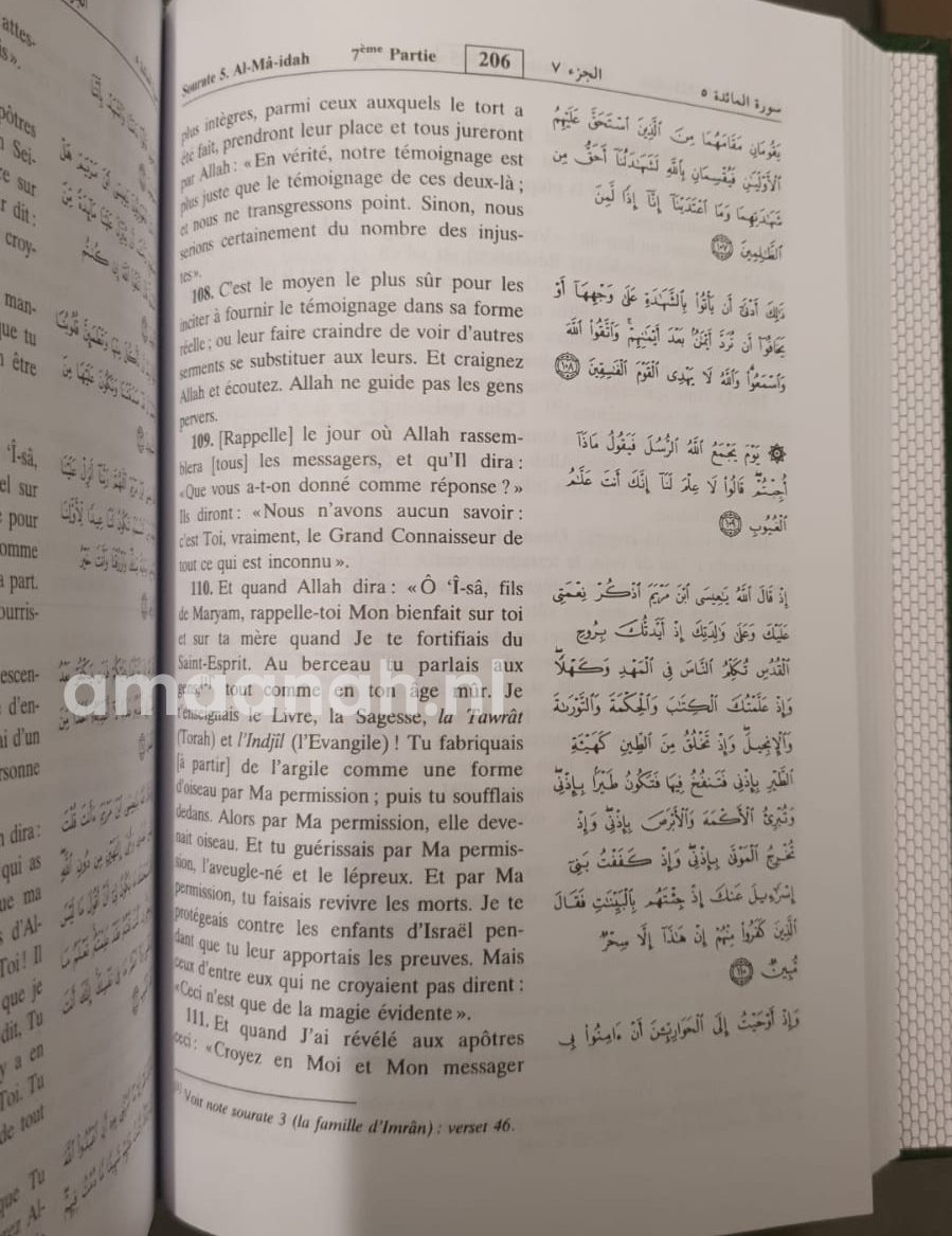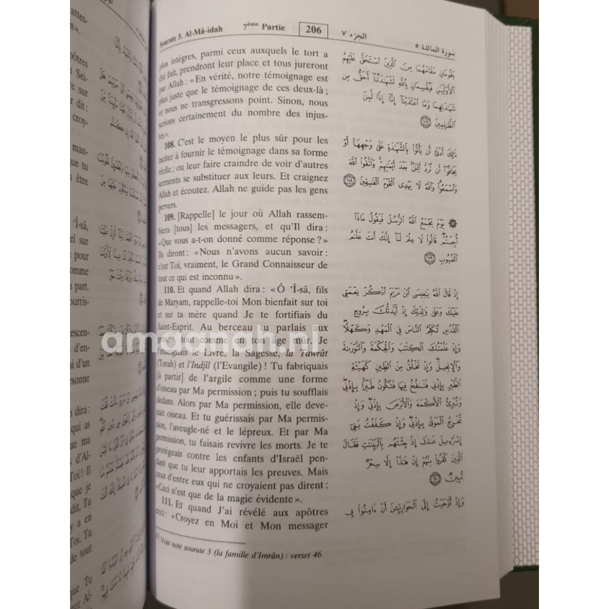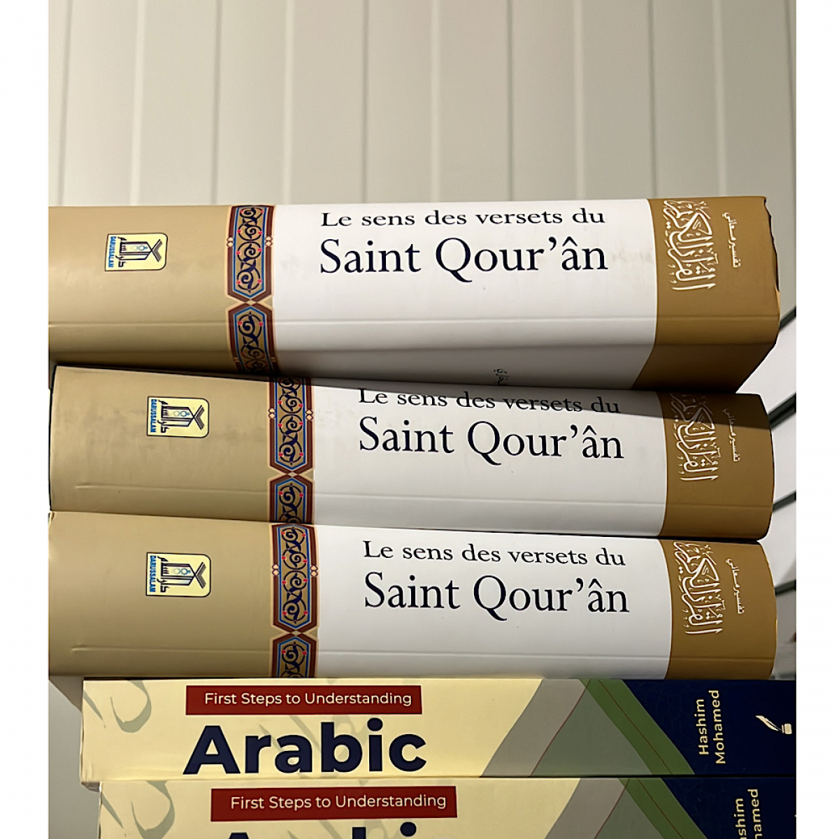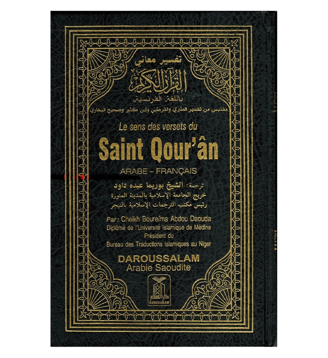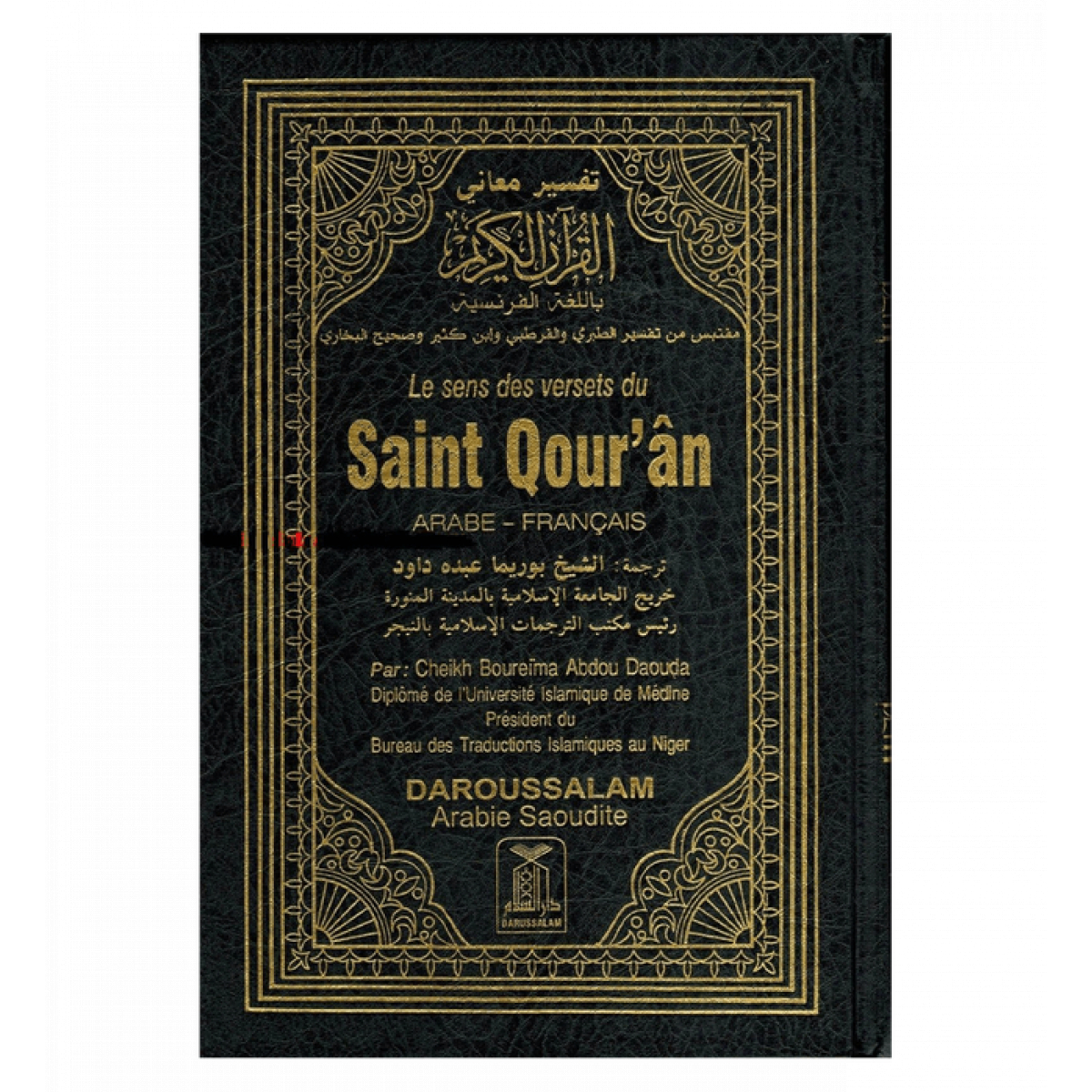 Interpretation of the meanings of the Noble Quran with Arabic text in the modern French language. A summarized version of At-Tabari, Al-Qurtubi and Ibn Kathir with comments from Sahih Al-Bukhari. This summarized 1 volume version offers brief commentary and Ahadith wherever necessary. This unique combination of commentary and relevant Ahadith makes this a very useful study reference tool. The Arabic text is taken from Mushaf al Madinah.