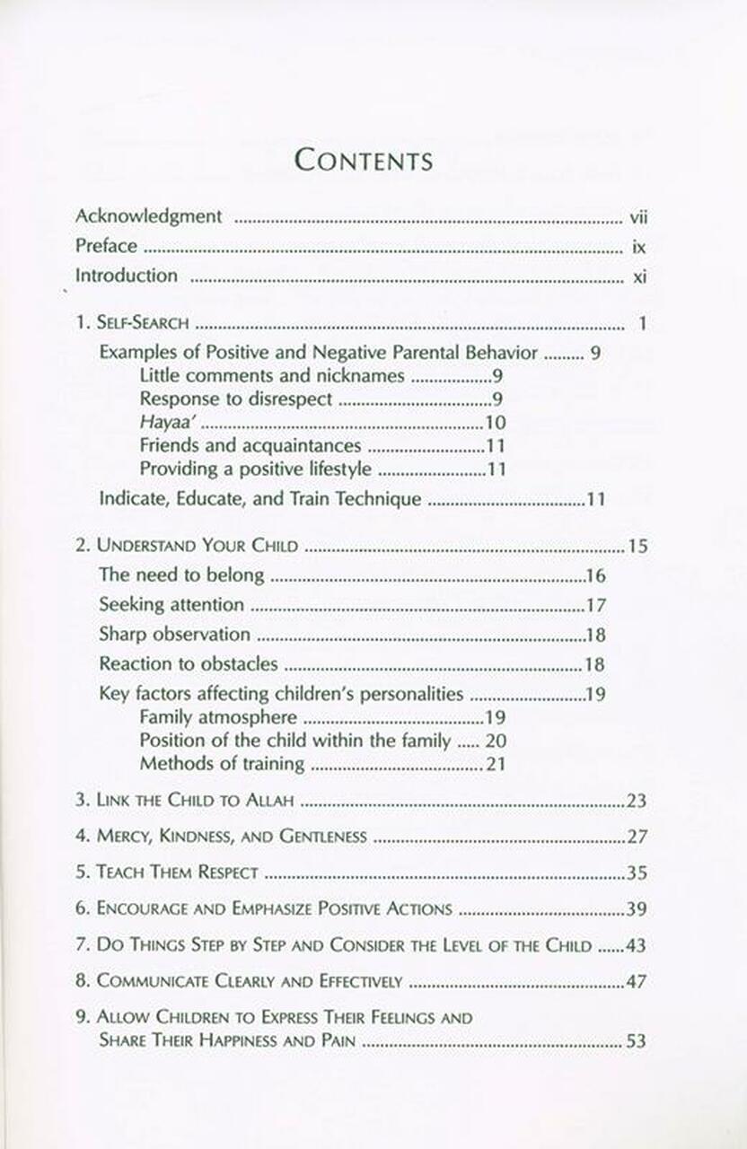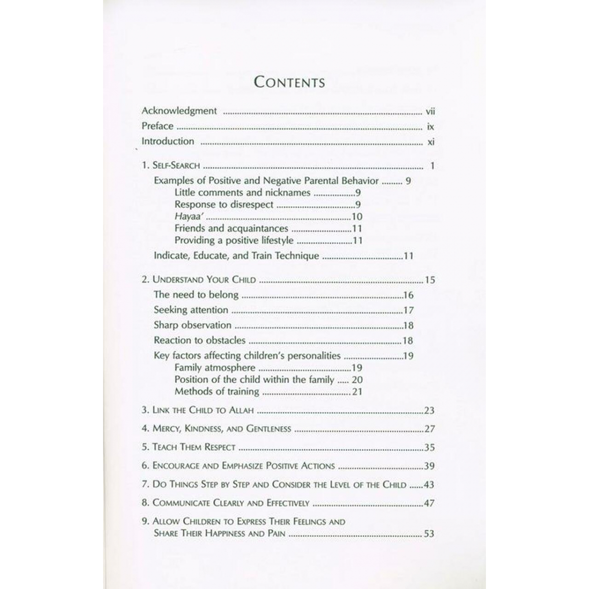 It is also very practical and user-friendly. The chapters are divided into clear and concise topics that address practical matters, such as “Encourage and Emphasize Positive Actions,” as well as spiritual matters, such as “Link the Child to Allah,” while always referring to the Qur’an and Sunnah directly.