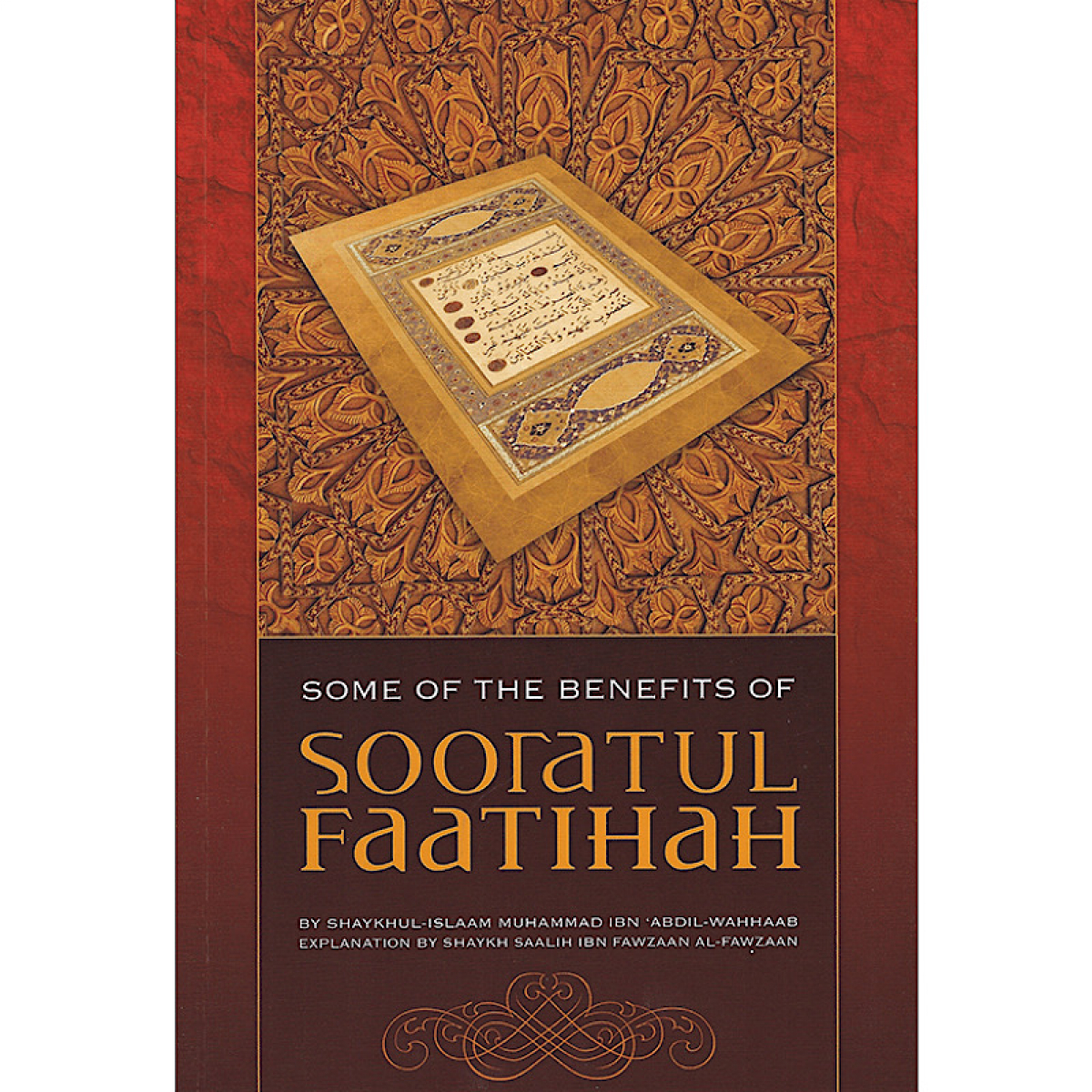 An explanation of a short treatise on the illustrious Sooratul Faatihah. This oft-repeated soorah (chapter) is a pillar of the salaah (prayer). Deep and virtuous in its meaning, the explanation uncovers its names and virtues, its comprising of the two types of du’aa (du’_’_Ύaa al-Ibaadah and du’aa al-mas’alah), the balance of fear (al khawf) and hope (ar-Rajaa’) contained therein, the four types of love, the praising of the believers and the condemnation of the disbelievers and the misguided.