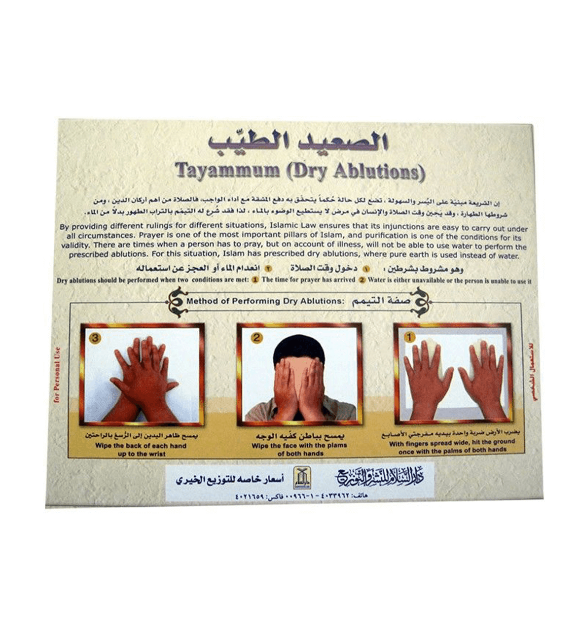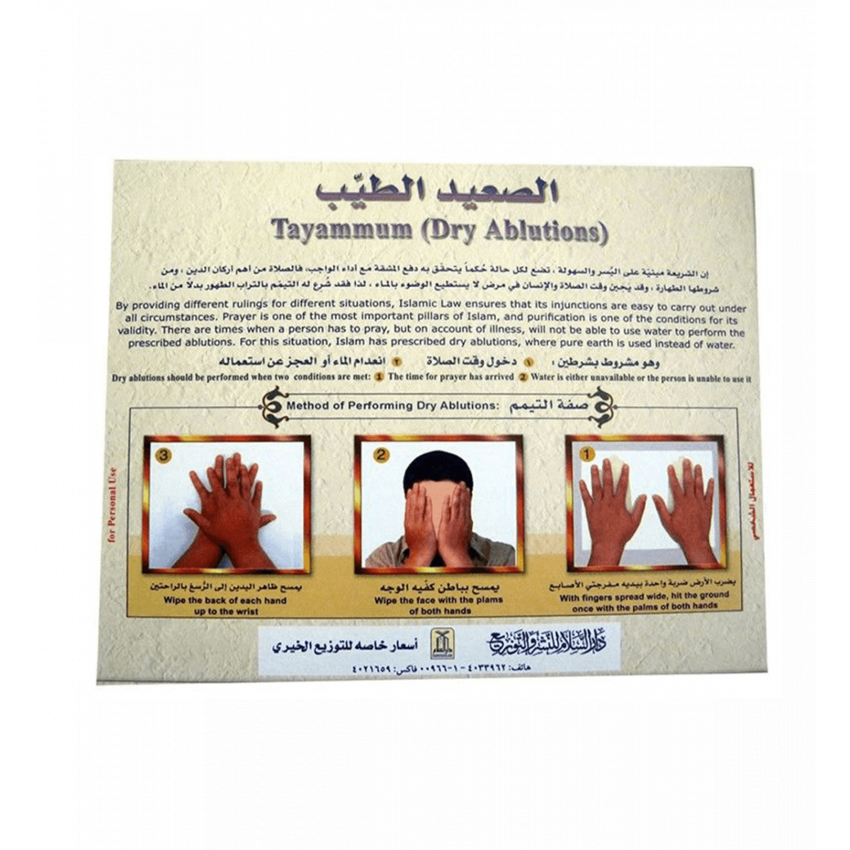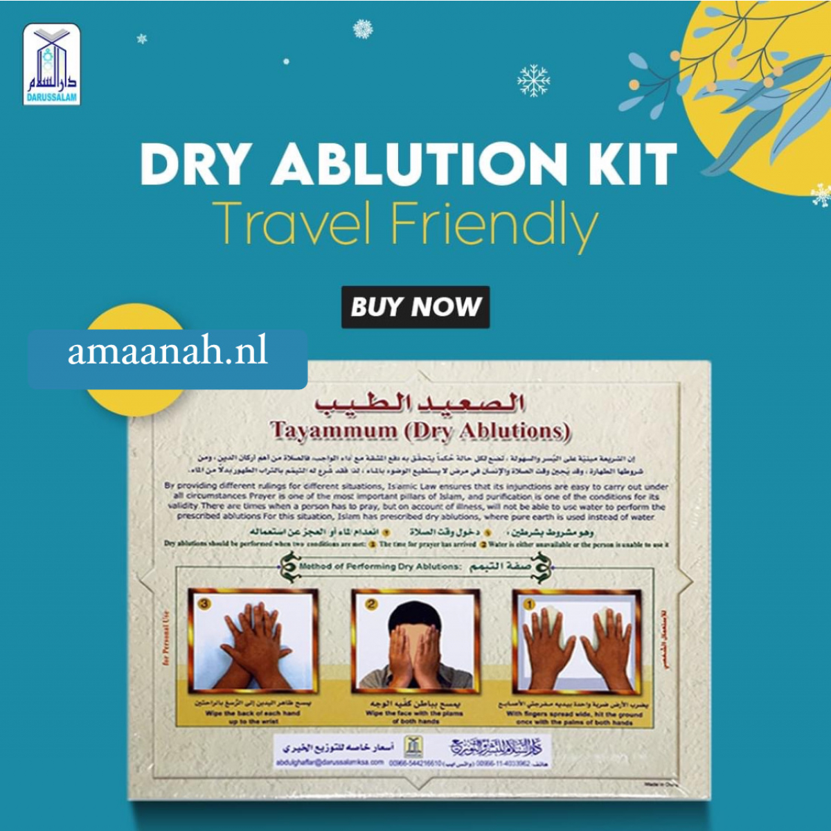 For your convenience, we have prepared “Tayammum Box” with the following features: