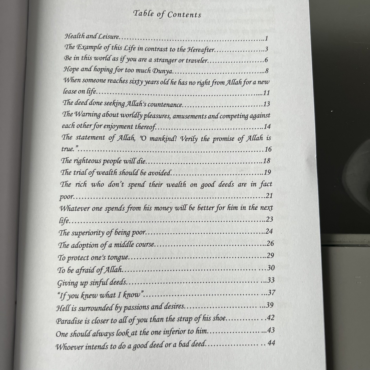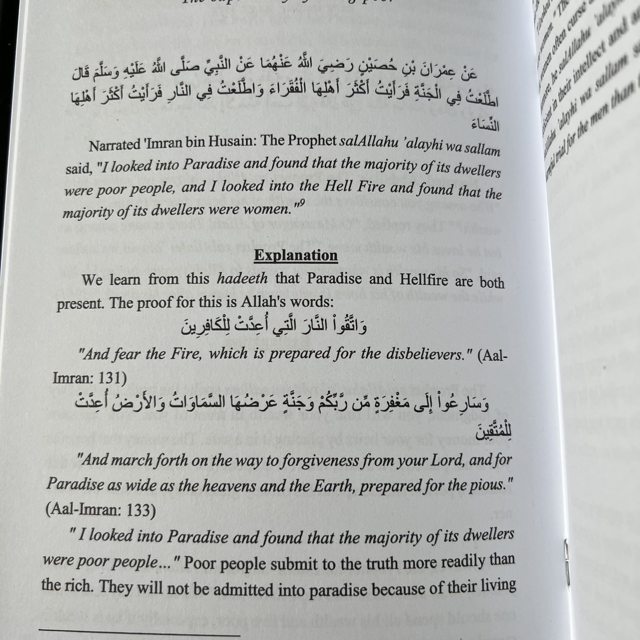 In the name of Allah, the Most Merciful and Most Compassionate. Praise to the One Who completed this religion and sent guidance through His Messenger salAllahu ’alayhi wa sallam. To begin: Every so often our daily lives preoccupy us and turn us away from Allah’s promise. When we walk out of our homes, turn on the radio, TV, or Internet, we are distracted by the evils we see and hear. As result of immorality and unashamed disobedience, our hearts grow hard and distant from Allah and His Messenger’s call. We know the message of Islam is true, but we are weak due to the rigidity of our heart, spirit and mind. In times like these, we need something to penetrate that stiffness. We need a remedy to soften that hardness and the inflexibility of our choices. Disunity and harshness afflicts this Ummah today. Consequently, many people have turned away from brotherhood, caring, and even Islam itself. Their hearts have transformed into dwellings of complete hatred for a sinner, disdain toward the weak Muslim, and jealousy of their successful brother or sister. I have selected some ahaadeeth from the most authentic book after the Qur’aan to soften the hearts in our chests. I used Shaykh Muhammad ibn Saalih Al-’Uthaymeen’s explanations for the ahaadeeth selected. The ahaadeeth selected come from a book in Imam Al-Bukhari’s collection titled Riqaq: Heart Softeners. This chapter brings tears to one’s eyes, fear to one’s mind, and most importantly it diminishes the rigidity in one’s heart. I ask Allah to make the translation and compilation solely for His pleasure. I pray to Allah for acceptance of this deed and His mercy in the Hereafter.