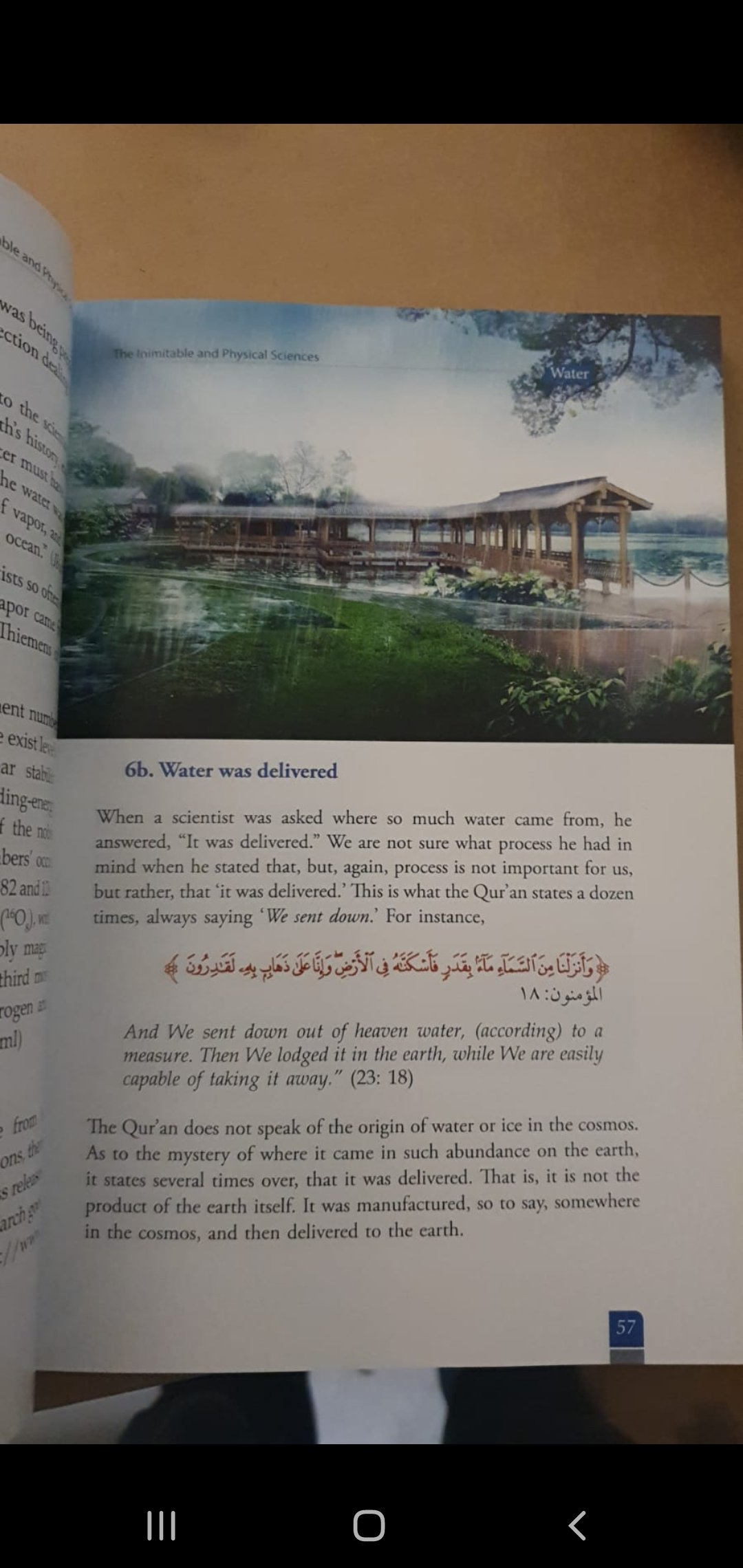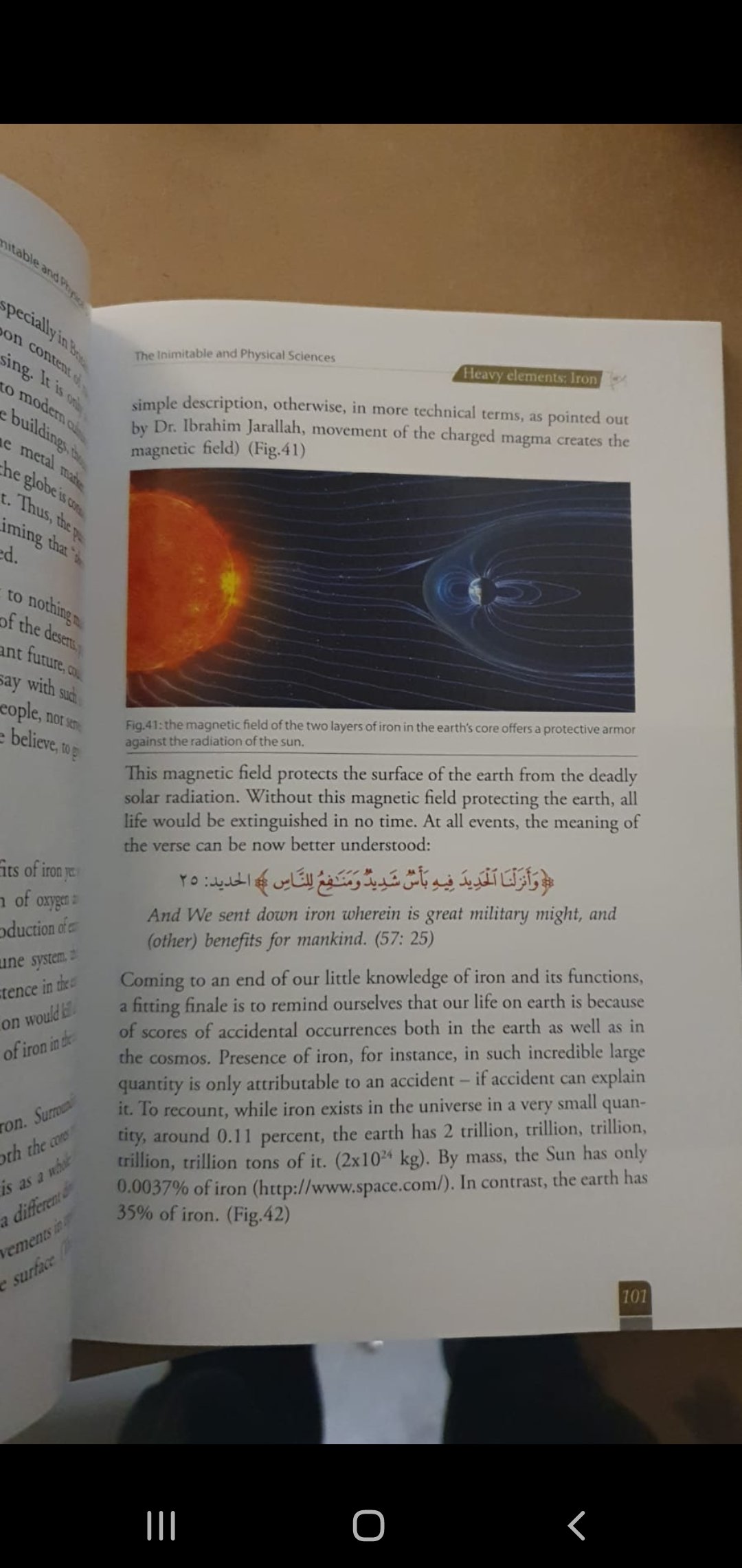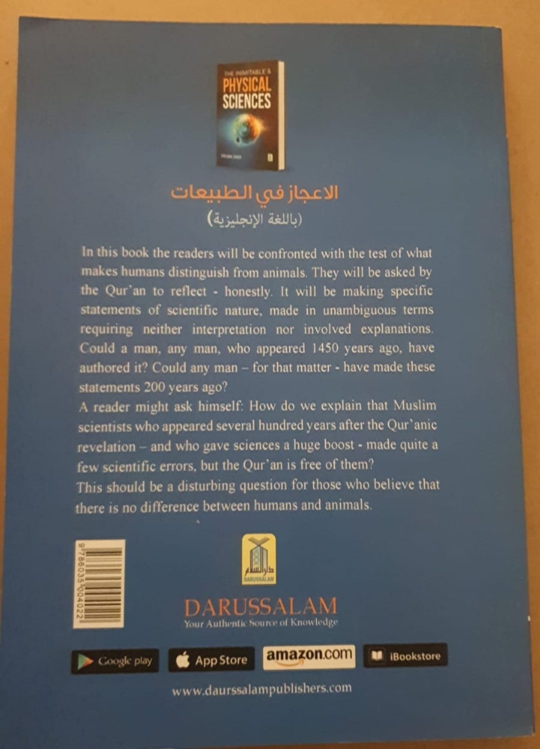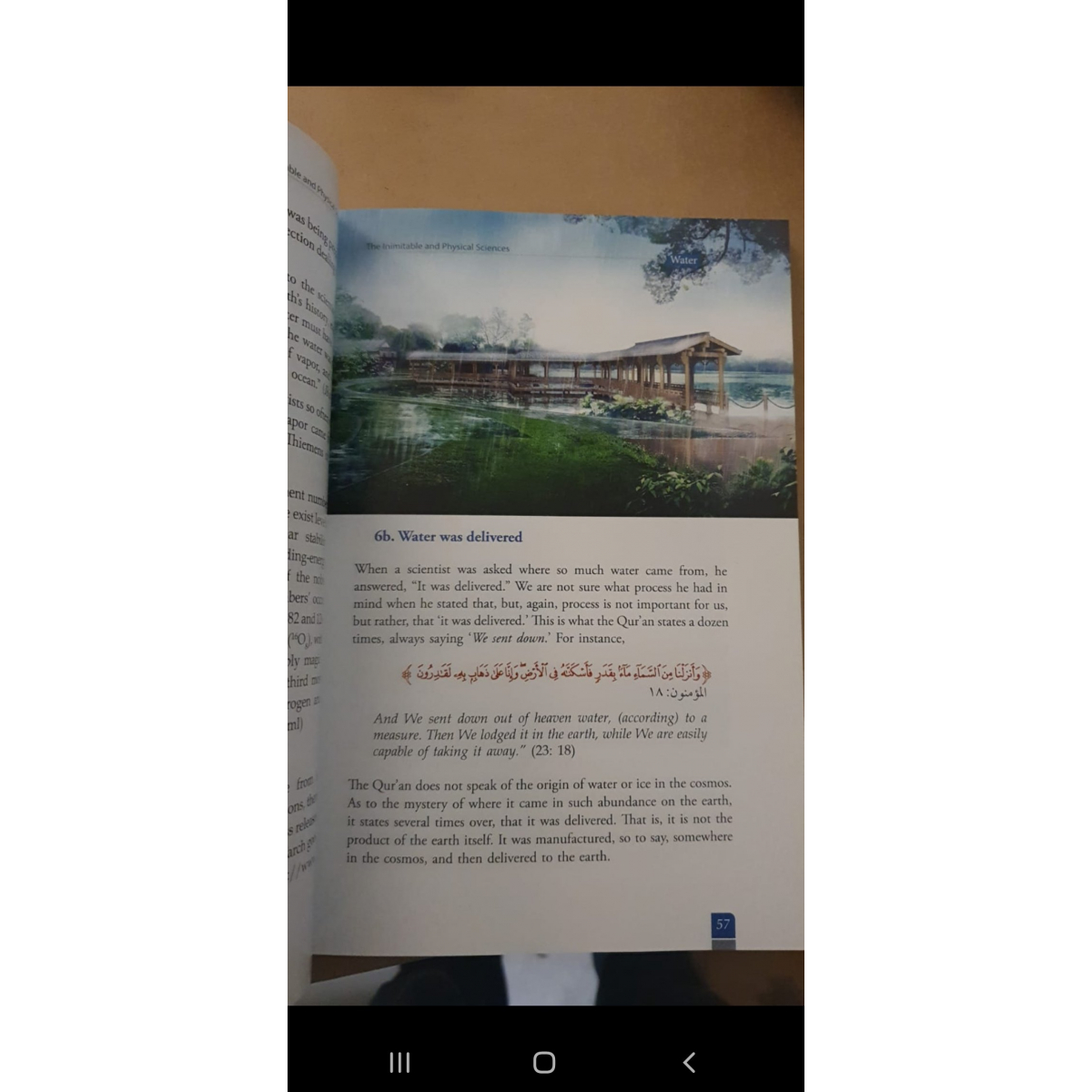 This book describes mythology, science before Islam, the spherical shape of the Earth, Earth’s movement, mountains, heavy elements in the earth. It also describes the decrease in the land barrier, between the seas, the moon, the sun, the number of plants, The Big Bang Theory, the shape of the universe, relativity of time, and Einstein’s conflict with the Quran, and so on.