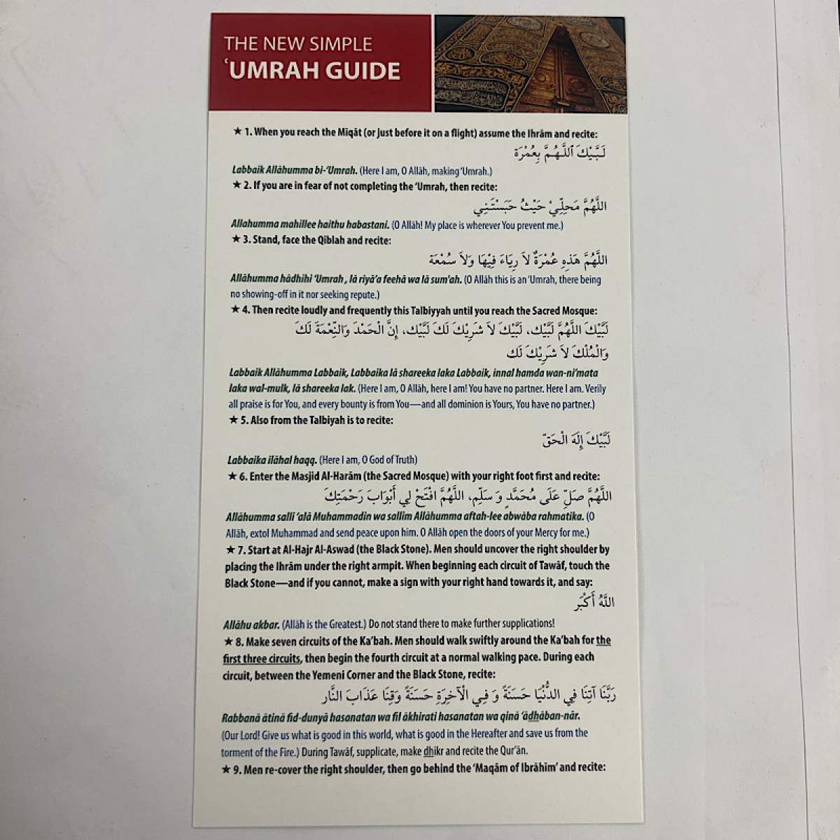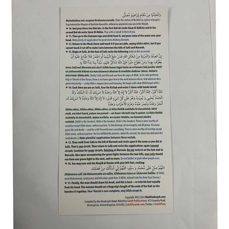 Flyer met de gebruiken voor umrah en hadj je kan dit ook bestellen om het te verdelen als hulp middel voor de bedevaarts reis