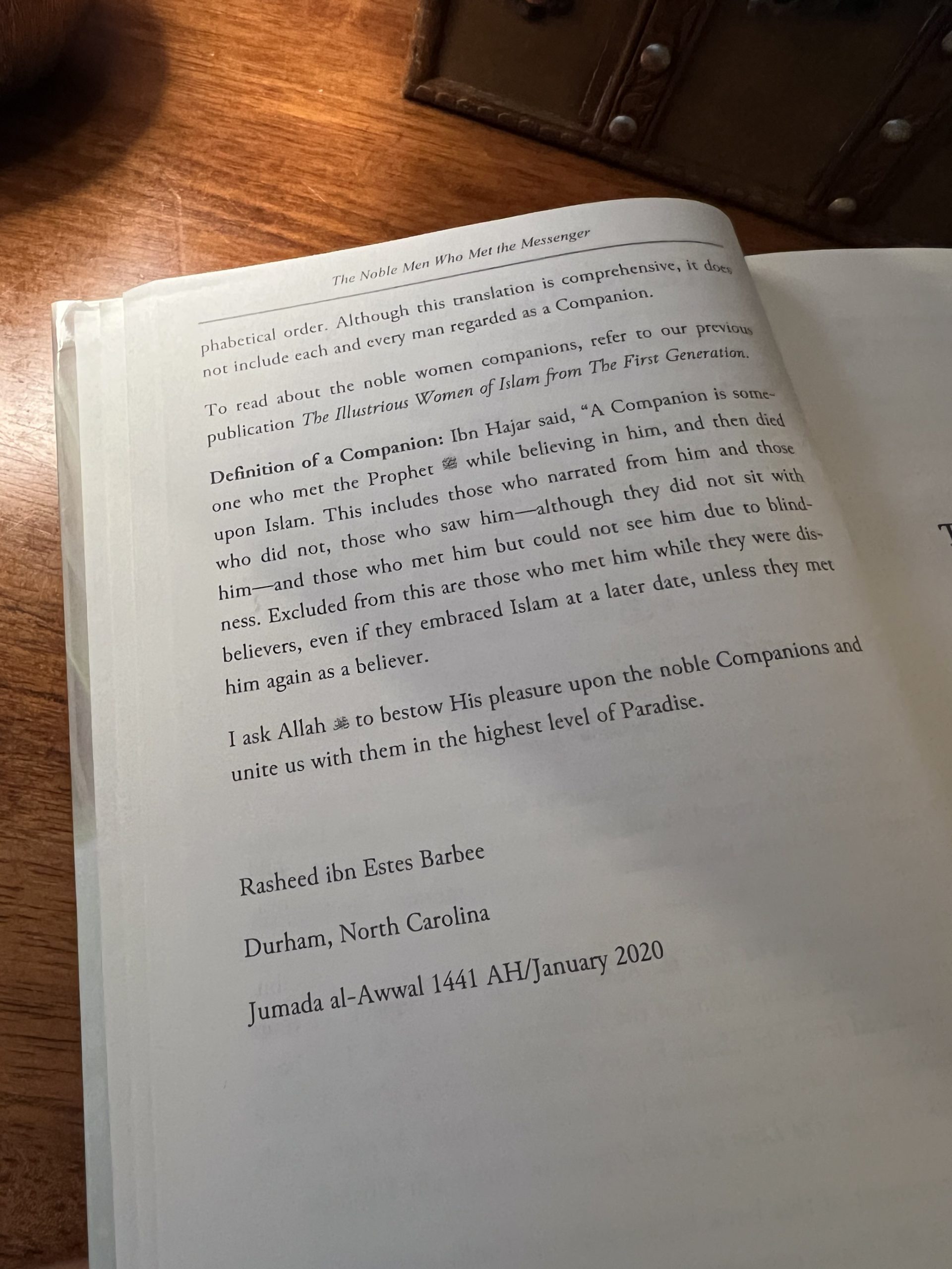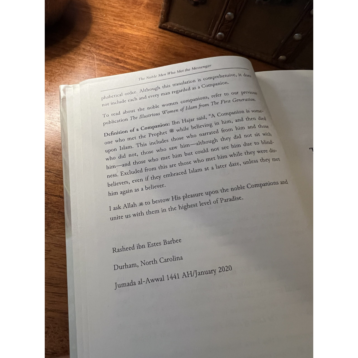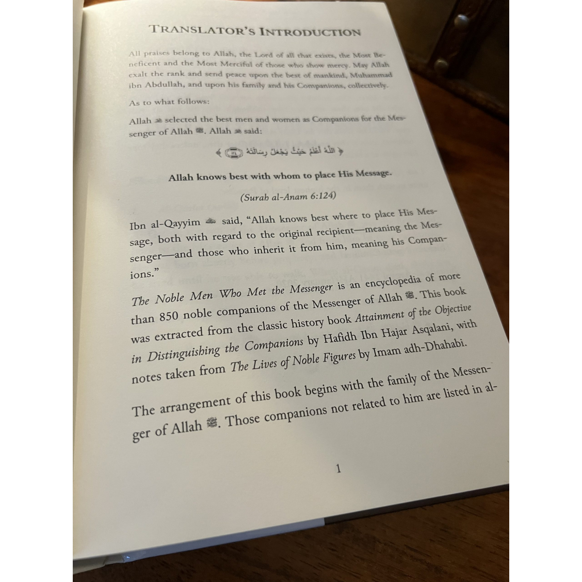 The Noble Men who Met the Messenger in an encyclopaedia of more than 850 noble Companions of the Messenger (Peace and blessings be upon him). those from mankind and the jinn. This book was extracted from the classic history book Attainment of the Objective in Distinguishing the Companions by Ibn Hajar Asqalani, with notes taken from The Lives of Noble Figures by Imaam Adh-Dhahabi