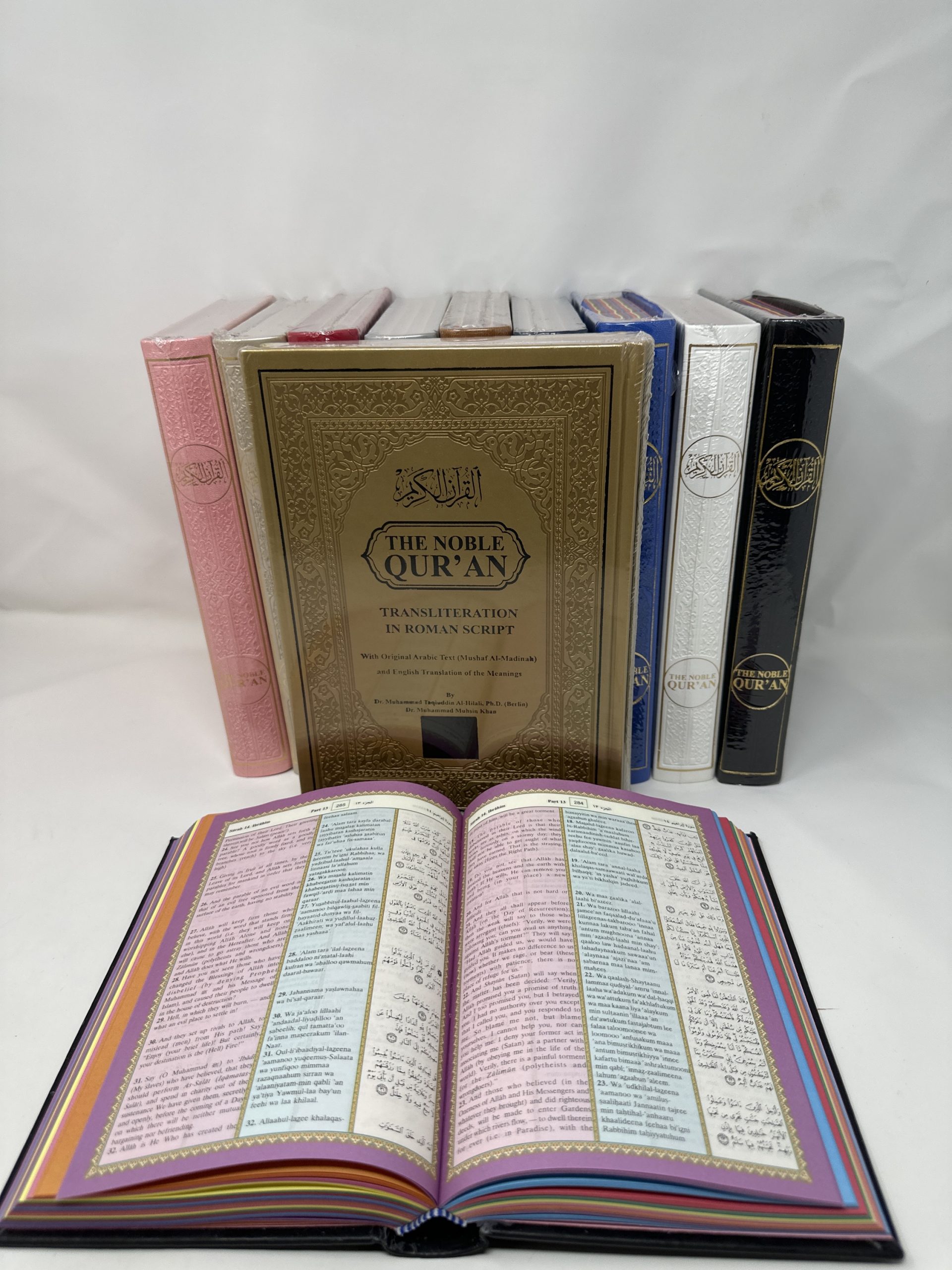 The Noble Quran Rainbow Transliteration in Roman Script Large Size 17×24 gold