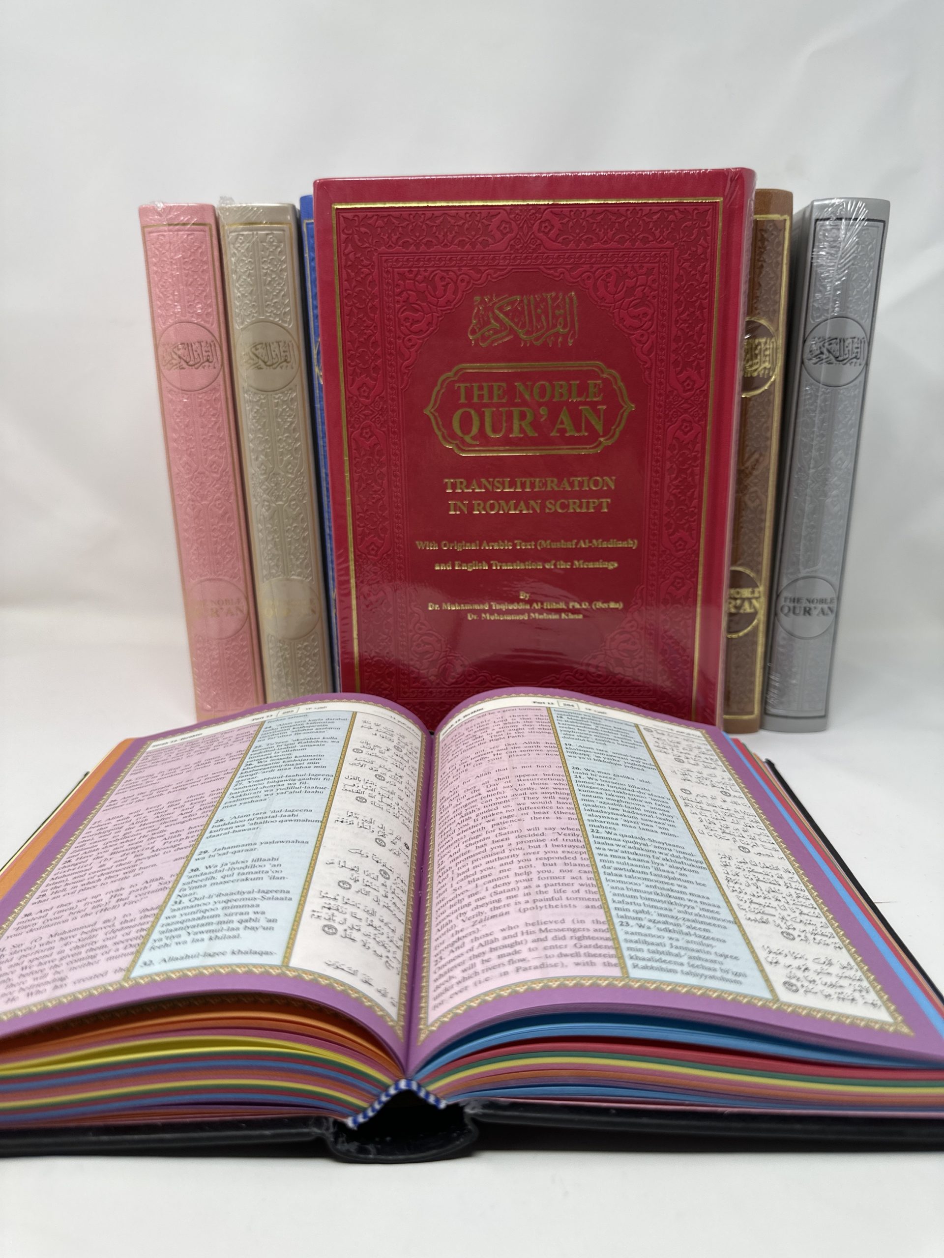 The Noble Quran Rainbow Transliteration in Roman Script Large Size 17×24 pink red