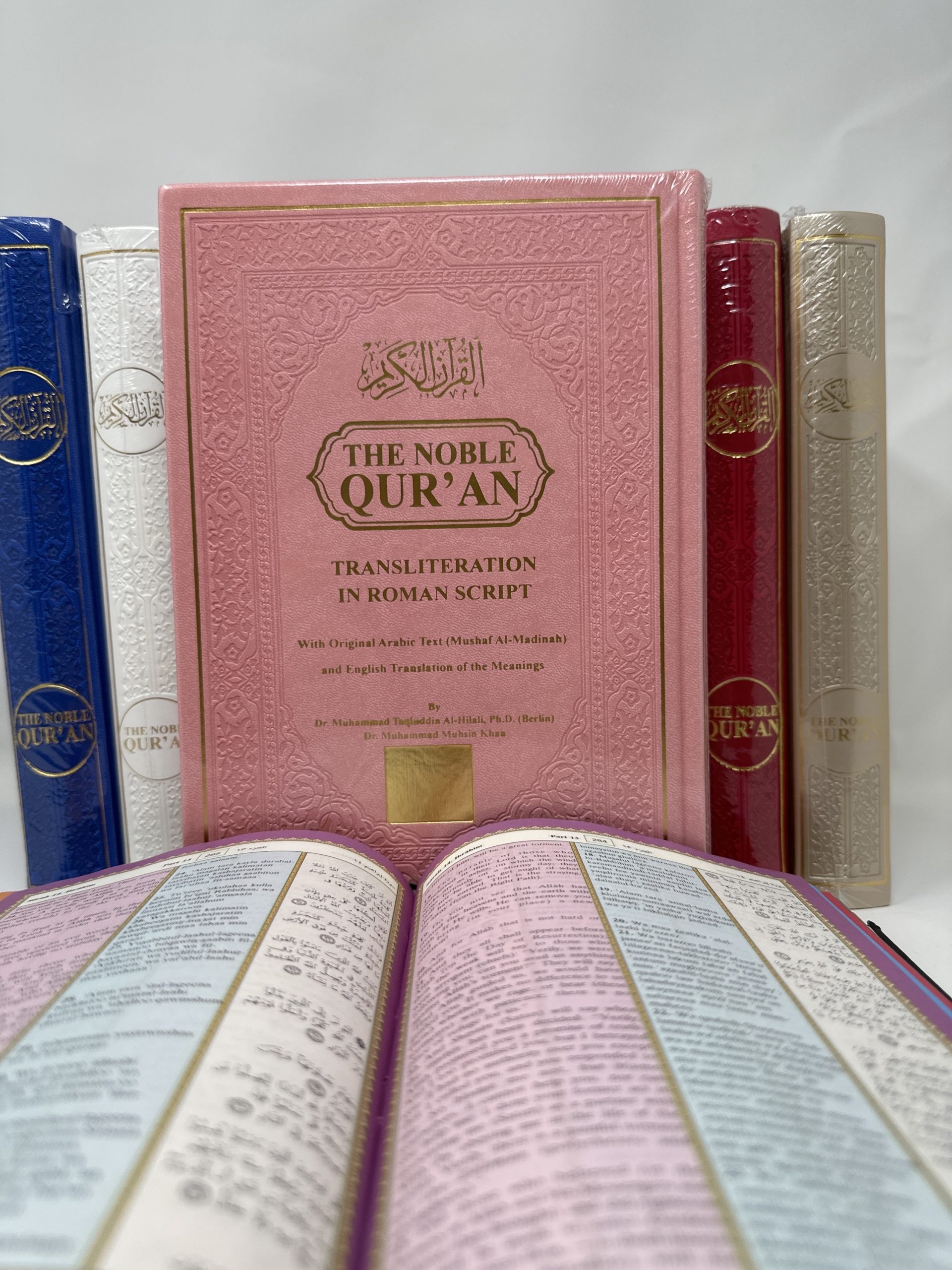The Noble Quran Rainbow Transliteration in Roman Script Large Size 17×24 pink
