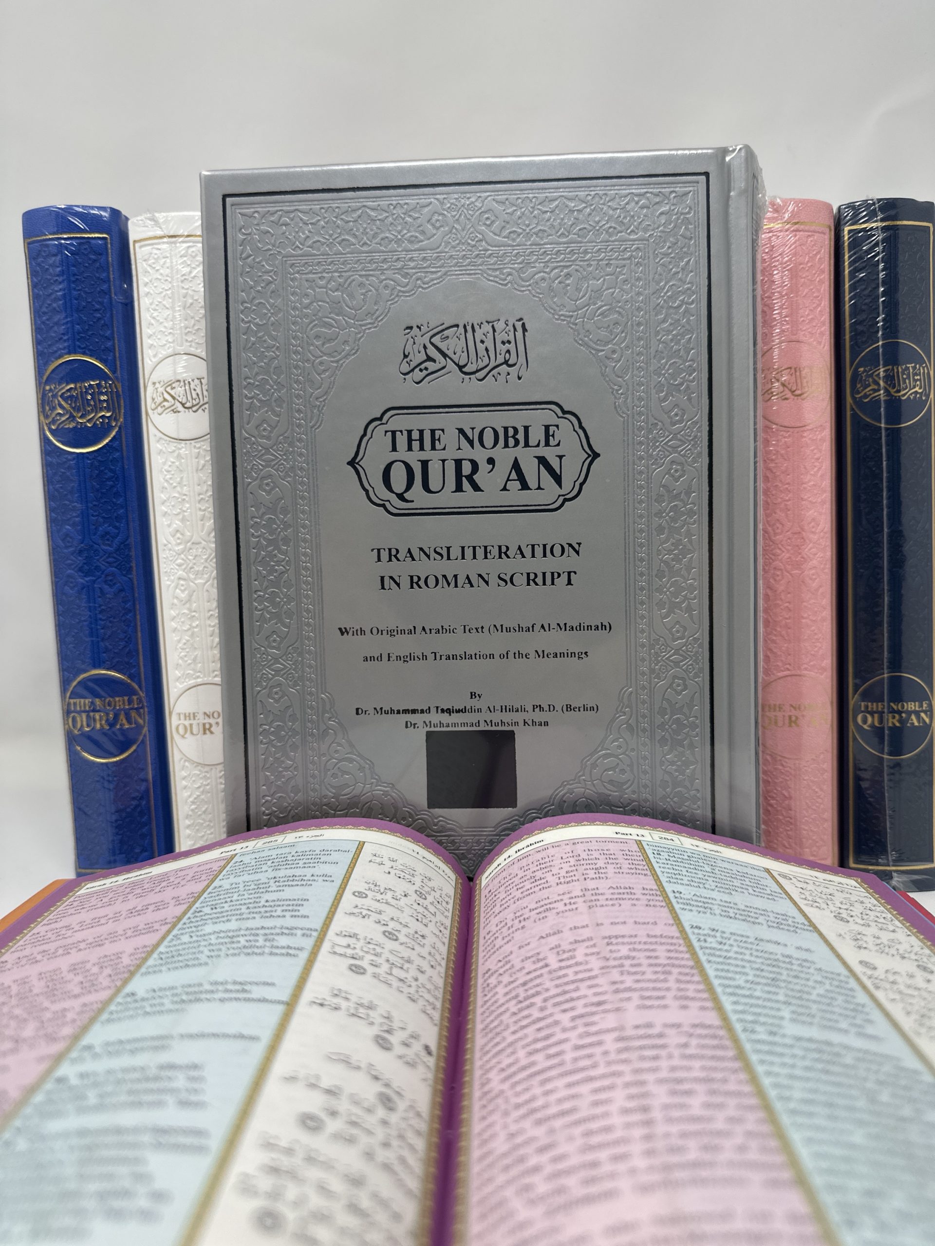The Noble Quran Rainbow Transliteration in Roman Script Large Size 17×24 silver