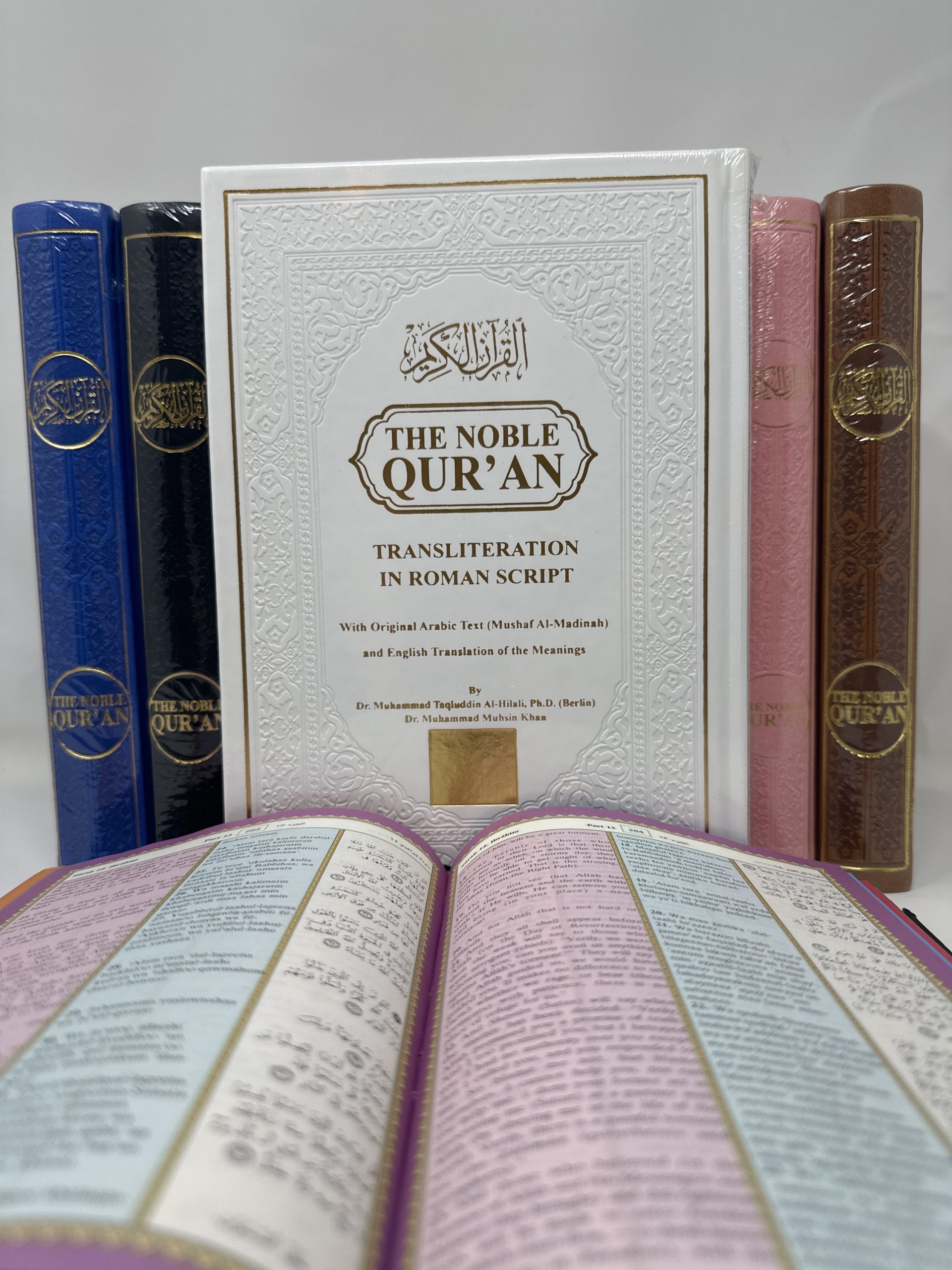 The Noble Quran Rainbow Transliteration in Roman Script Large Size 17×24 white