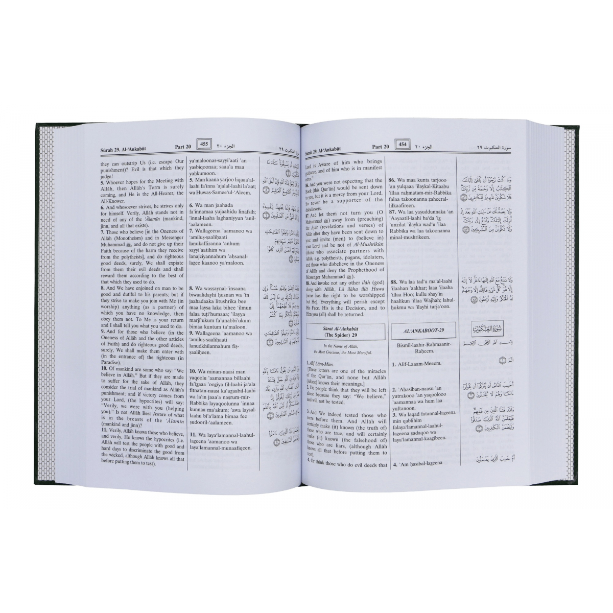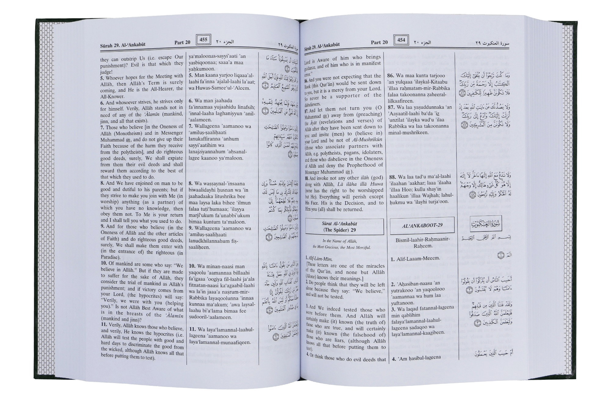 5. One more column is added in this particular edition of the interpretation of the meanings of the Noble Qur’an, providing the readers the transliteration of the Arabic Verses along with their translation.